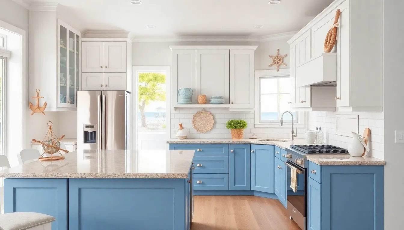 Incorporating texture through backsplashes or fabrics improves depth, making the kitchen more dynamic. Coastal themes evoke freshness and serenity, while farmhouse styles introduce warmth and rustic charm. Both styles work seamlessly with this color palette, addressing different homeowner preferences.