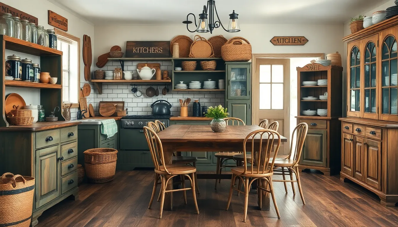 Vintage decor adds charm and warmth to the kitchen, creating an inviting atmosphere rich in character. Incorporating rustic accessories and antique furniture pieces enhances the nostalgic appeal of the space.